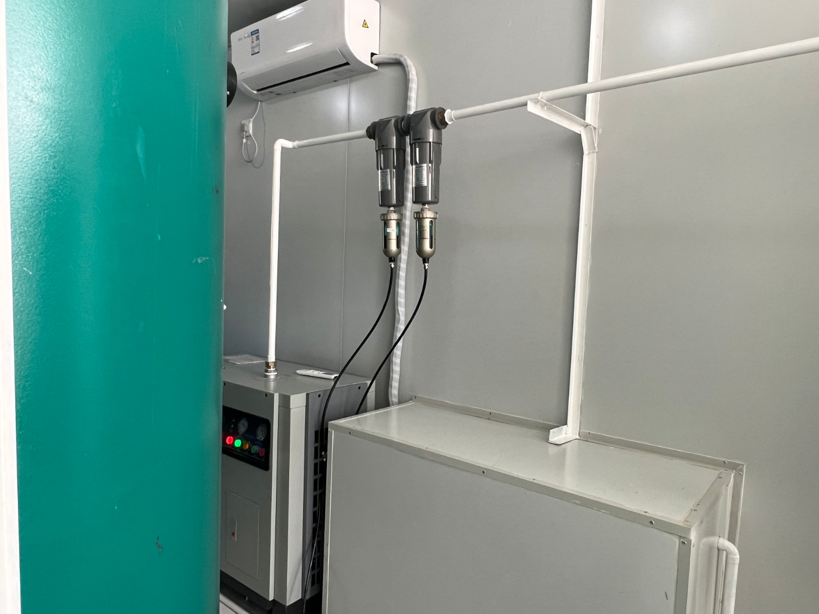 1)方艙內(nèi)排風(fēng)口應(yīng)加裝防爆排氣風(fēng)扇,排氣風(fēng)扇安裝尺寸應(yīng)為400×400mm;空壓機(jī)散熱風(fēng)罩采用白鐵皮制作,風(fēng)罩與墻體外部連接處應(yīng)考慮防雨結(jié)構(gòu);風(fēng)罩待空壓機(jī)就位后,予以現(xiàn)場(chǎng)配制;